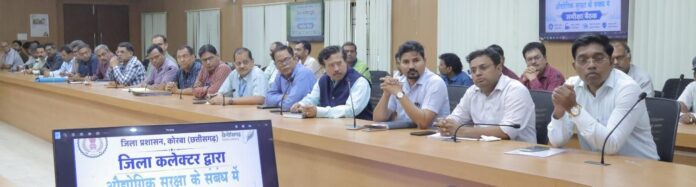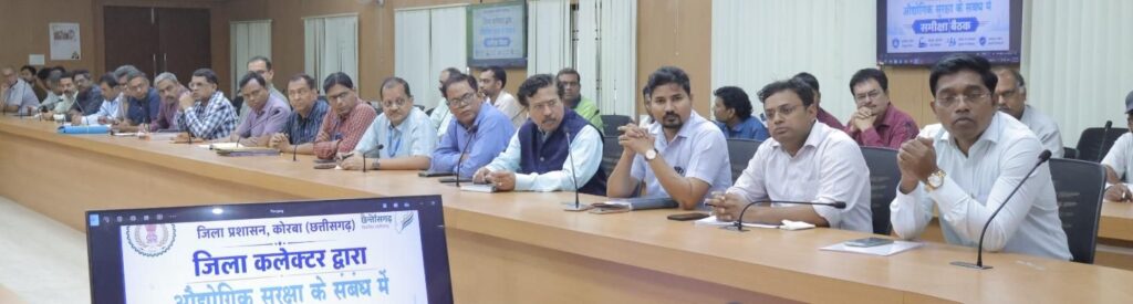 कोरबा, 25 अप्रैल 2026/ कलेक्टर श्री कुणाल दुदावत के निर्देशन में आज कलेक्टोरेट सभाकक्ष में जिले के सभी औद्योगिक प्रतिष्ठानों की बैठक आयोजित की गई। अपर कलेक्टर श्री ओंकार यादव ने आकस्मिक दुर्घटना के मद्देनज़र सभी प्रतिष्ठानों को सतर्क रहने तथा औद्योगिक एवं पावर प्लांट सुरक्षा मानकों का कड़ाई से पालन सुनिश्चित करने के निर्देश दिए।