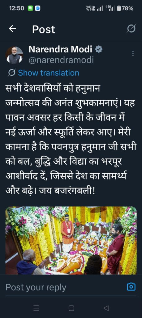 “सभी देशवासियों को हनुमान जन्मोत्सव की अनंत शुभकामनाएं। यह पावन अवसर हर किसी के जीवन में नई ऊर्जा और स्फूर्ति लेकर आए। मेरी कामना है कि पवनपुत्र हनुमान जी सभी को बल, बुद्धि और विद्या का भरपूर आशीर्वाद दें, जिससे देश का सामर्थ्य और बढ़े। जय बजरंगबली!”